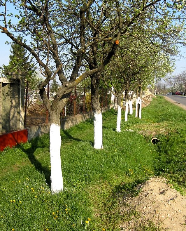 Painting trees with some white substance is widespread in Russia